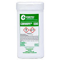 Corwipe® 500 is a revolutionary wipe which removes light rust, grease, oil, and dust while leaving behind a protective antistatic and thin VpCI® (Vapor phase Corrosion Inhibitor) film. The static dissipative film will drain charges when properly grounded, and reduce triboelectric voltage to less than 300 volts. Corwipe® 500 is designed for both industrial and commercial cleaning applications. This product cleans machinery, equipment, tools, hoods, parts in-process, office equipment, etc. Corwipe® 500 contains active water based material that is safe to handle, is not harmful to skin, and is classified as non-hazardous. In addition to its cleaning and antistatic properties, it leaves a thin film of corrosion inhibitors on the treated surface to protect most metal surfaces against corrosion. The Corwipe® 500 features a 5” x 5” (12.7 x 12.7cm) non-woven fabric towel, which is difficult to rip, even with the toughest of cleaning applications. Wipes are packed 25 to a flip top oval HDPE Towlette container